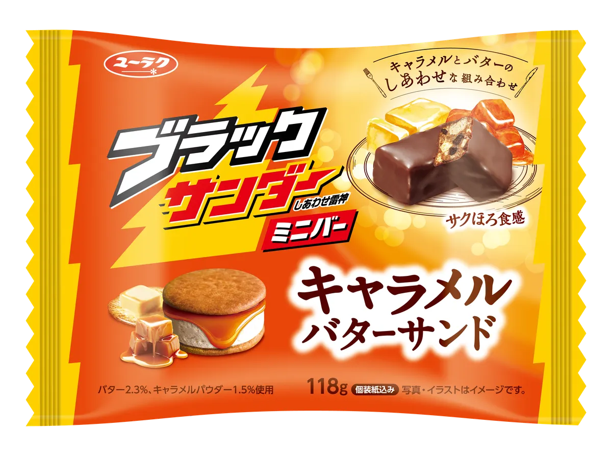 ブラックサンダーミニバーシリーズに、秋冬にぴったりのコク深くあま~いおいしさのキャラメルバターサンドが仲間入り!
