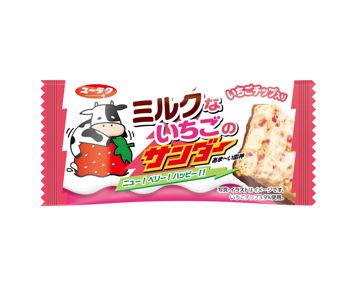 ミルクといちごの王道フレーバーを、ブラックサンダーならではのザクザク食感でお楽しみいただけます⚡