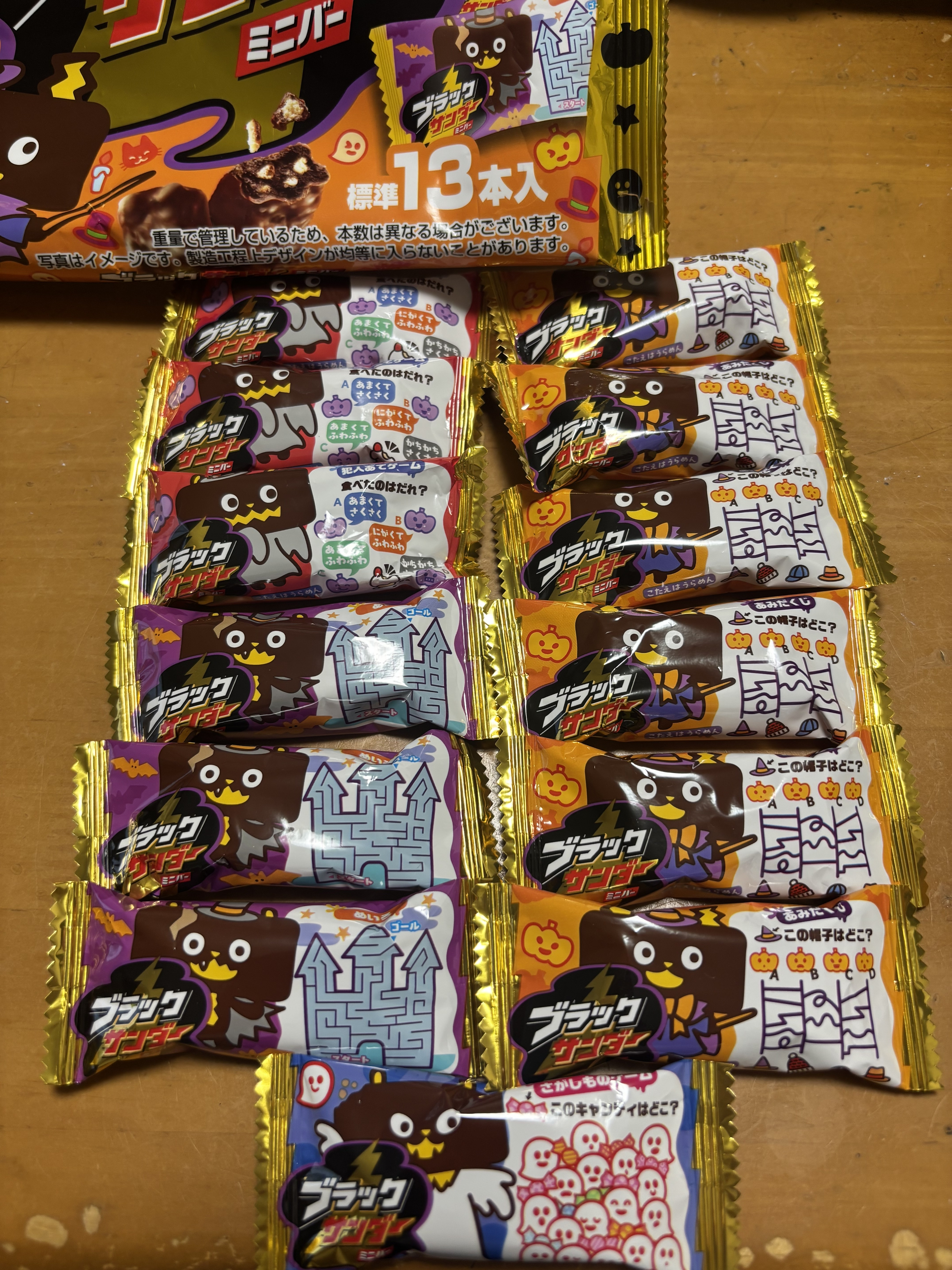 トップ > ⚡画像投稿! > ブラックサンダーと私 > ブラックサンダーミニバー🍫⚡️ ちびチョコ 2025/10/12 08:22 ブラックサンダーミニバー🍫⚡️ ブラックサンダーミニバーハロウィンを買いました。 今回は標準13本入に対して13本でした。 過去に一回だけ標準本数より一本多く入ってた事がありました😊 重量管理で同じ重量でも13本より14本入ってた方がお得感を感じます👍 ブラックサンダー ブラックサンダーミニバー ブラックサンダーミニバーハロウィン いいね 共有する 共有する X facebook LINE リンクをコピー コメントする 0 件の返信 (新着順)