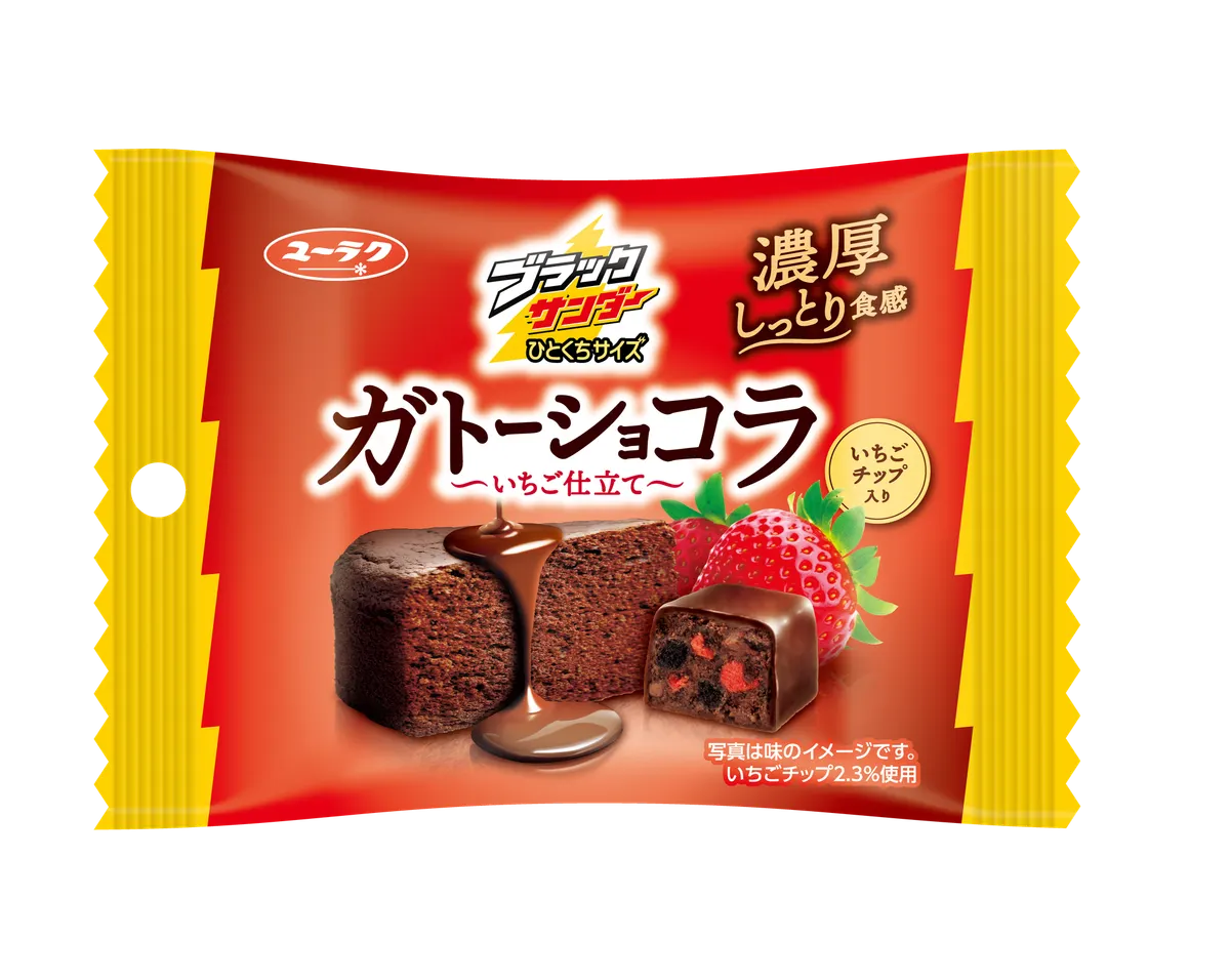 チョコ欲が増す時期にぴったりの濃厚なガトーショコラがぎゅっと一粒に詰まった「ブラックサンダーひとくちサイズ ガトーショコラ~いちご仕立て~」を発売いたします!